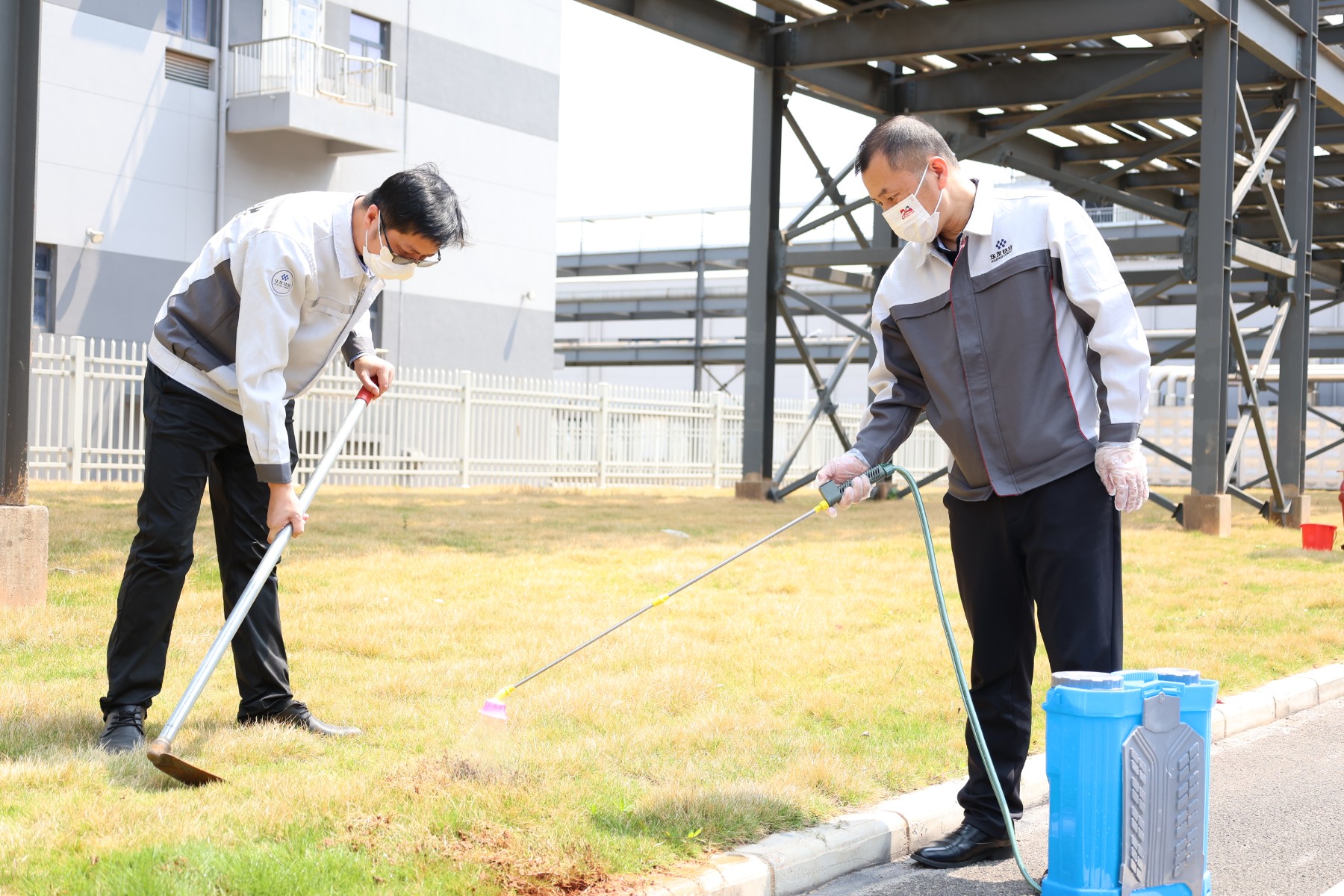 活動(dòng)現(xiàn)場(chǎng),廣西基地全體員工熱情高漲,不怕臟、不怕累,充分展現(xiàn)了華友人的擔(dān)當(dāng)與奉獻(xiàn)精神。經(jīng)過1個(gè)多小時(shí)的努力,廠區(qū)環(huán)境得到了顯著提升,道路干凈整潔,草坪綠意盎然,公共設(shè)施煥然一新,看著自己的勞動(dòng)成果,他們臉上洋溢著滿足與自豪的笑容。