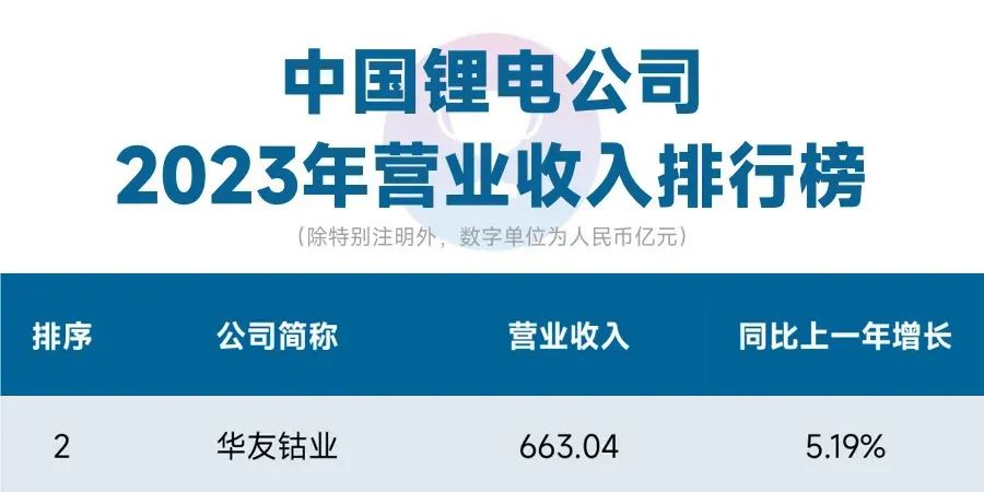 Recently, 24 Tide Industry Research Institute (TTIR) released a top 10 ranking based on the data of revenue, advance receipts, net profit attributed to mother, foreign investment, operating and fundraising cash flow, and other different dimensions in the latest annual reports (2023 financial reports) of 111 domestic lithium listed/IPO companies. In the process of China's lithium accelerated industrial reshuffle and game in 2023, Huayou Cobalt rose to the challenge and broke through the difficulties, ranking the second and eighth in the corresponding list with a revenue of 66.304 billion yuan and a net profit of 3.351 billion yuan, and other dimensional data also ranked in the forefront.
