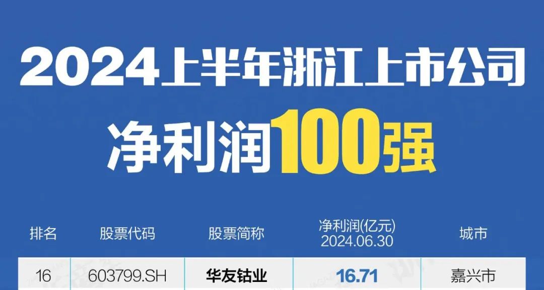 Recently, 709 listed companies in Zhejiang released their first half-year results. on August 31, Zheshang Magazine released the 2024 first half of Zhejiang's top 100 list of listed companies in terms of revenue and top 100 list of net profit. Huayou Cobalt ranked 14th and 16th on the list with total revenue of 30.050 billion yuan and net profit of 1.671 billion yuan.
