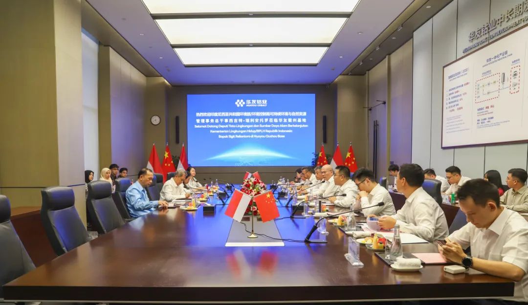 On August 24, H.E. Sigit Reliantoro, Director General of Sustainable Environment and Natural Resources Management at Indonesia’s Ministry of Environment/Environmental Control Bureau, led a delegation to visit Huayou Quzhou Base. Chen Xuehua, Chairman of Huayou Holding Group, jointly hosted the visit with Yang Jianqiang, Party Secretary and Chairman of CITIC Construction, and their teams. Representatives from all three parties held discussions centered on sustainable development and explored collaborative opportunities.