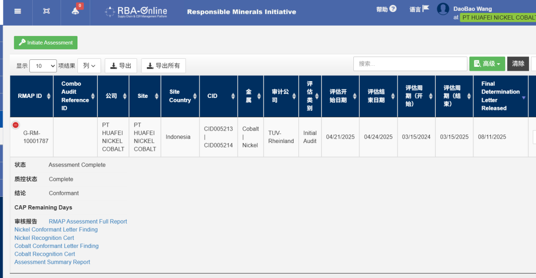 In August, the Responsible Minerals Initiative (RMI) official website announced that Huafei Nickel Cobalt (Indonesia) Co., Ltd. had successfully passed the Responsible Minerals Assurance Process (RMAP) audit. Huafei has become an Indonesian smelting enterprise conducting due diligence management on nickel and cobalt mineral supply chains and passing the RMAP audit.