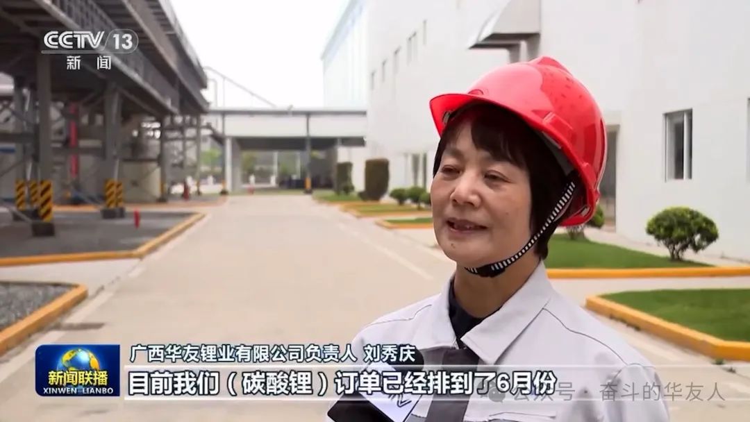 廣西華友鋰業(yè)有限公司負責人劉秀慶:“目前我們(碳酸鋰)訂單已經(jīng)排到6月份,產線都在滿負荷生產狀態(tài)。”