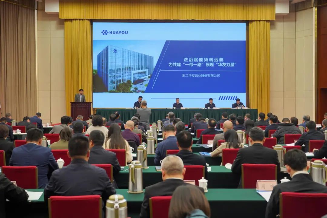 會議旨在總結交流浙江涉外法治工作,分析當前形勢,部署下階段重點任務。方啟學在會上發表了題為《法治賦能揚帆遠航 為共建“一帶一路” 展現 “華友力量”》的演講,展現了華友在涉外法治領域的積極探索與實踐。