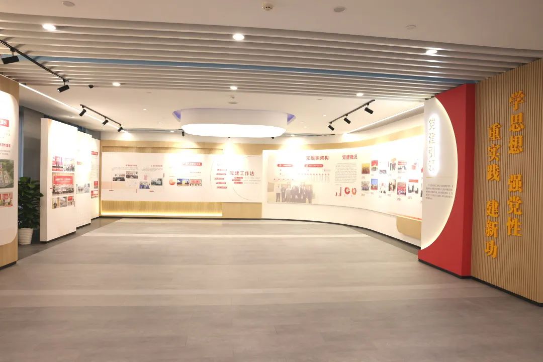 華友衢州產業園黨群服務中心形成“1+N”的功能布局,以黨群展示廳為主線,配有創業發展史展廳、職工書屋、紅色教育中心、新聞直播間、“兩代表一委員”工作室等區塊,是集教育宣傳、接待辦事、會議培訓、文化衛健等功能的開放式職工文化綜合性黨群服務陣地,實現紅色元素可觀可感,形成一道亮麗的“紅色風景線”。
