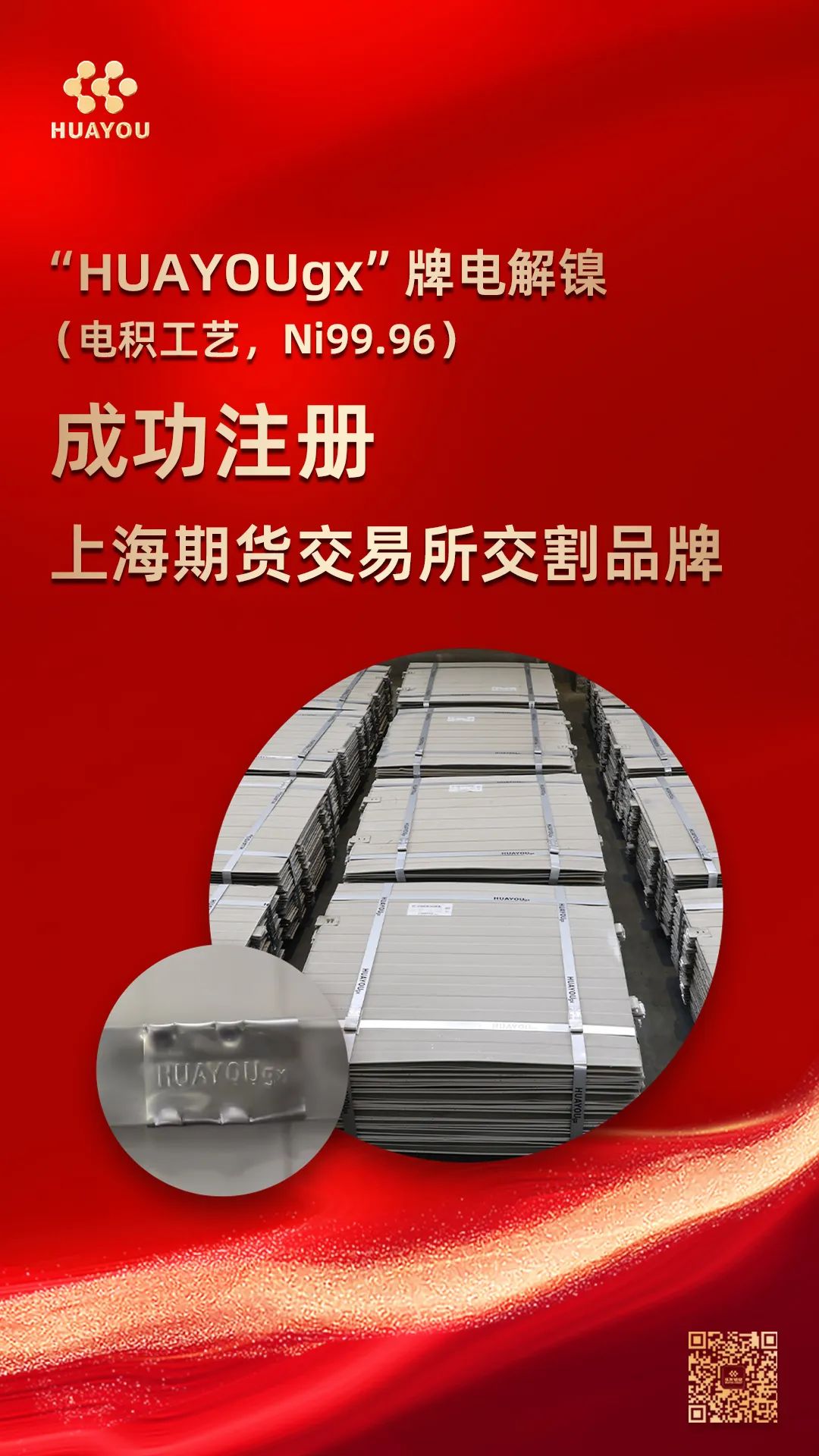 “HUAYOUgx”牌電解鎳,再次成功注冊!