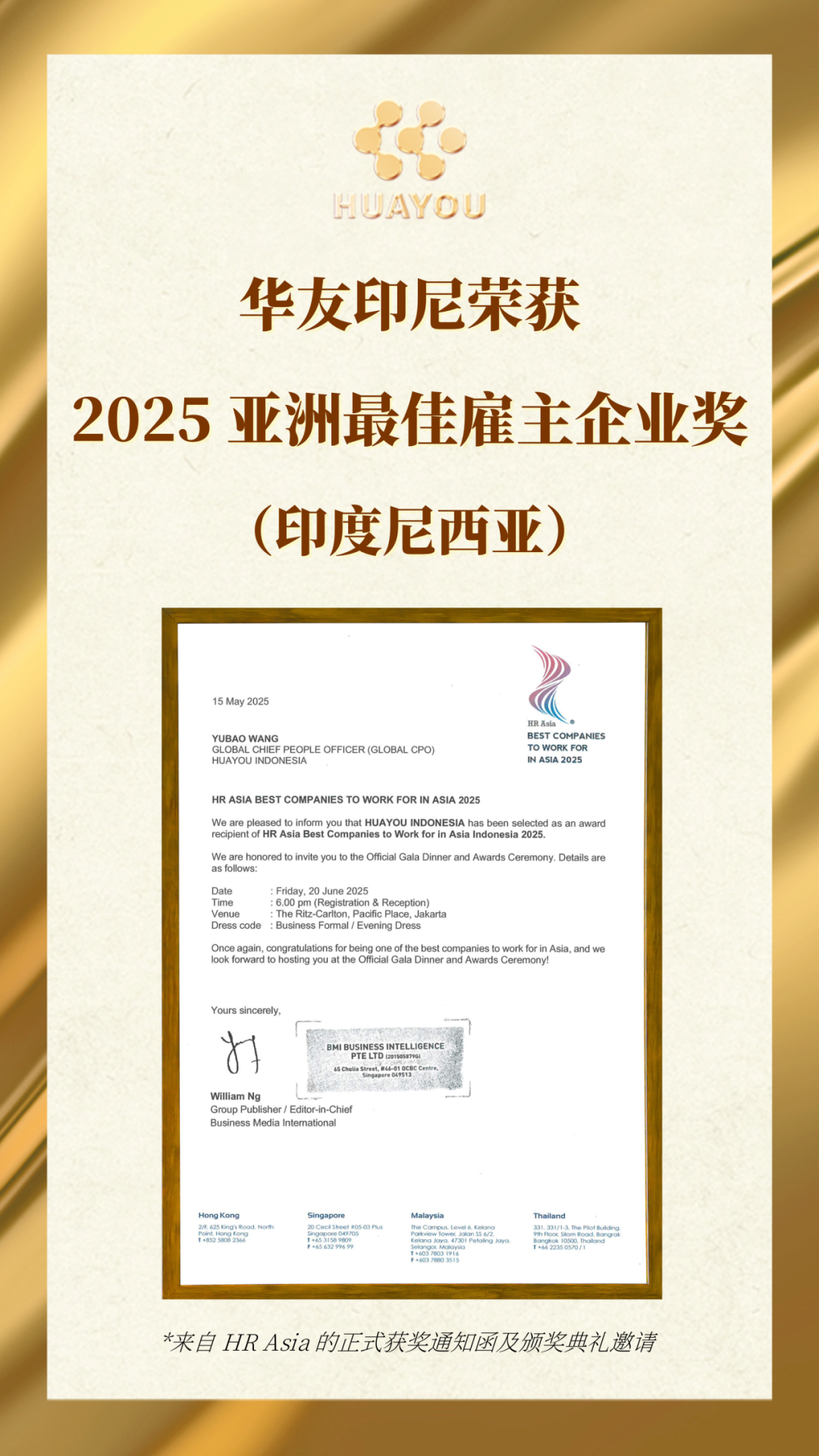華友印尼榮耀加冕!2025亞洲最佳雇主企業獎強勢入賬