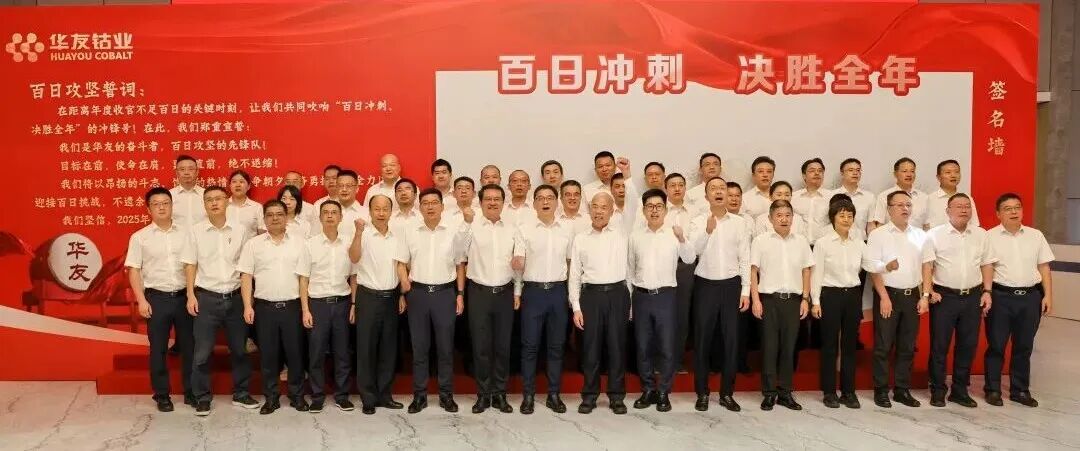 “我承諾:百日沖刺、決勝全年!華友必勝!必勝!必勝!”全體干部在陳雪華董事長帶領(lǐng)下莊嚴宣誓,并在簽名墻鄭重簽名。一筆一劃,皆是使命;一字一句,滿載擔當,凝聚成“使命必達”的華友力量!