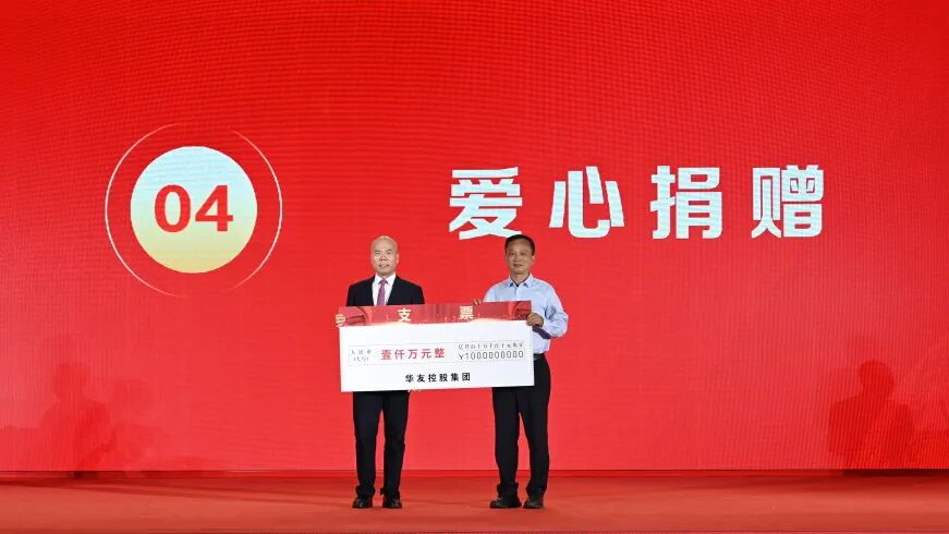 ▲華友向玉林市玉華教育發(fā)展基金愛(ài)心捐贈(zèng)1000萬(wàn)元人民幣。